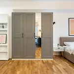 З диваном і письмовим столом, Апартаменти Charming Studio Close To Unirii Square пропонують такі зручності, як супутникове телебачення, прес для брюк, праска з прасувальною дошкою і прасувальне приладдя, а також такі зручності, як система клімат-контролю. Доступні ліжка з пухкими подушками. Санвузол оснащений окремим туалетом і душем, феном і рушниками.